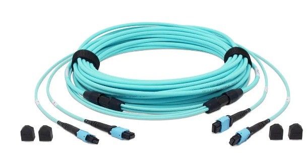 24 फाइबर एमटीपी महिला-एमटीपी महिला OM3 फाइबर ऑप्टिक हार्नेस केबल,1m,LSZH,टाइप बी |
